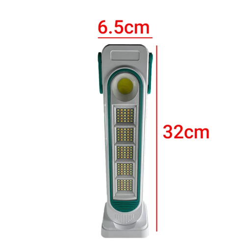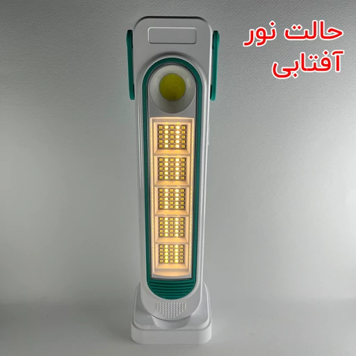 این چراغ زیبا و پر نور دارای امکان تنظیم میزان نور(کم/زیا) و نوع نور(ال ای دی/سی او بی/براکت) و رنگ نور(آفتابی/مهتابی/ترکیبی) می باشد و دارای ورودی برق(تایپ سی) می باشد و علاوه بر آن از طریق پنل خورشیدی که در پشت خود دارد می تواند خودش را شارژ کند و دارای خروجی برق تایپ ای(پاور بانک) می باشد که می توان موبایل و سایر وسایل الکترونیکی را روشن کند.